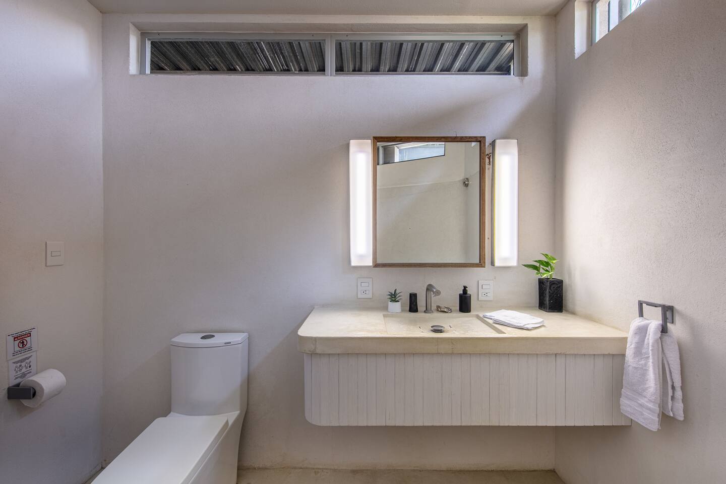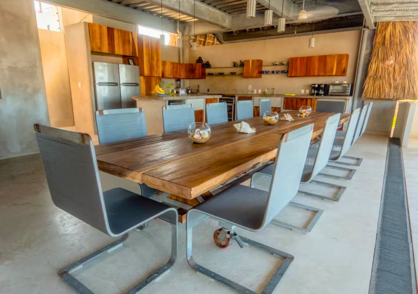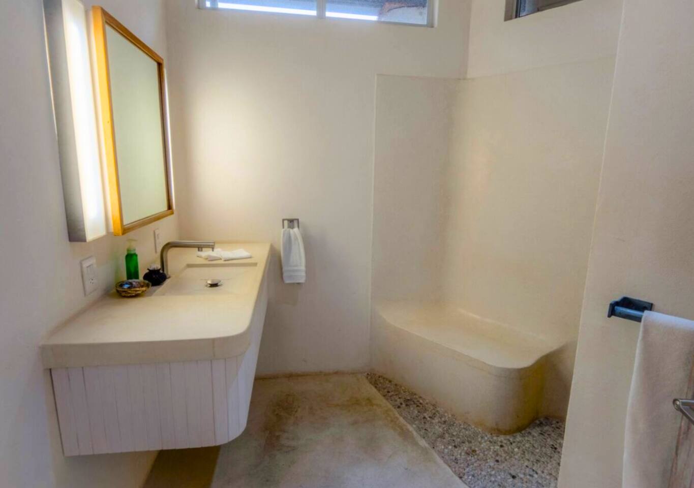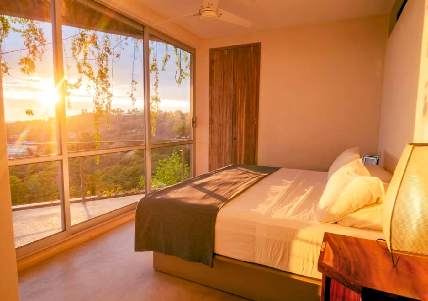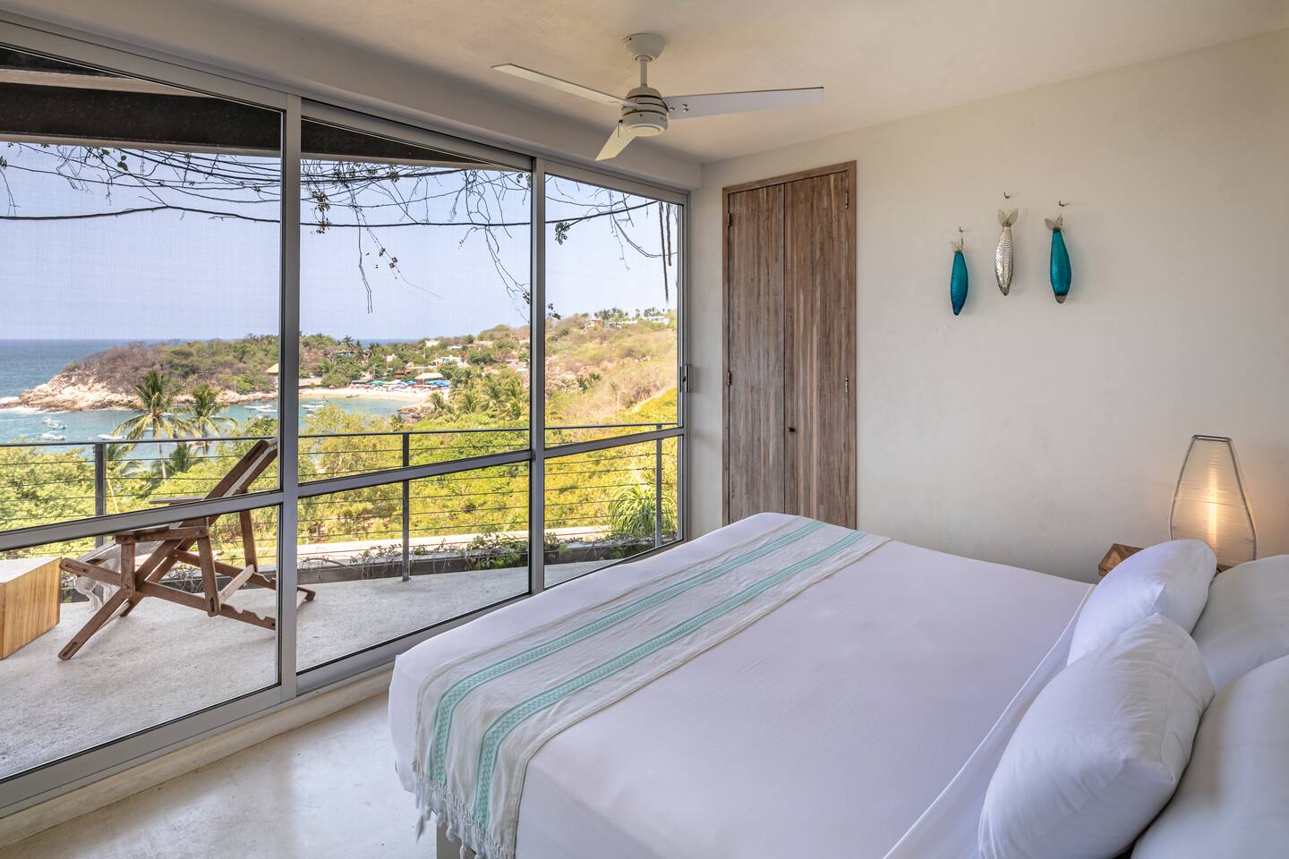 Located on the second level of Casa Cascada, Room #6 offers expansive ocean views and a relaxed coastal ambiance. Wake up to the Pacific right from your bed, then step onto your private patio, complete with a hammock, two chairs, and a table—perfect for enjoying the sea breeze or a quiet morning coffee. Inside, the room includes a flexible bed setup (king-size or two twins upon request), an ensuite bathroom, and a spacious surfboard closet for travelers bringing their gear. The space blends tropical warmth with clean, industrial design, creating a comfortable and airy environment ideal for rest and inspiration. A digital safe is also included for your peace of mind Note: Casa Cascada is naturally ventilated and does not include air conditioning or glass windows. The open design welcomes ocean breezes to cool the space. This room may not suit guests who require traditional climate control or complete enclosure. Please also note: Our multi-level property is built into a hillside and features outdoor staircases, uneven stone paths, and open walkways. These architectural elements may not suit those requiring mobility support or childproofed surroundings. Shared spaces available to all guests include: • A fully equipped kitchen • Spacious dining and living area • Infinity pool with panoramic views • Dedicated remote working space Geographic Setting Casa Cascada is located right on Playa Manzanillo, one of Puerto Escondido’s most beautiful and swimmable beaches. Just 5 minutes from Puerto Escondido Airport, 7 minutes by car to Zicatela Beach, and 12 minutes to La Punta—the heart of surf and nightlife. The area is peaceful and safe, ideal for a relaxing escape. There is ample street parking with camera surveillance for extra security. Nearby Amenities Guests can easily access surf beaches, beachside bars, yoga studios, artisanal markets, and a variety of restaurants and cafés. Taxis are readily available, and transportation to/from Puerto Escondido Airport can be arranged upon request. The nearby jungle trails and unspoiled beaches offer a deeper connection with nature Key Features - Adults-only for tranquil ambiance 🙌 - No A/C – open-air eco design with fans 🌬️ - Infinity pool with panoramic ocean views 🌅 - Garden-view terrace with ocean glimpses 🌿 - Homemade breakfast included 🍳 - King-size bed and private bathroom 🛏️ - Access to fully equipped shared kitchen 🍽️ - High Speed WiFi & dedicated co-working space 💻 - Digital safe & privacy screens 🔐 - Full-time staff & English-speaking host available 🤝 Transportation Taxis and airport transfers available, Free street parking nearby, 15 minutes to downtown Puerto Escondido, Easy access to surf spots and beach towns