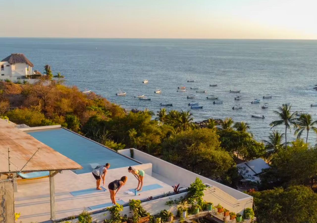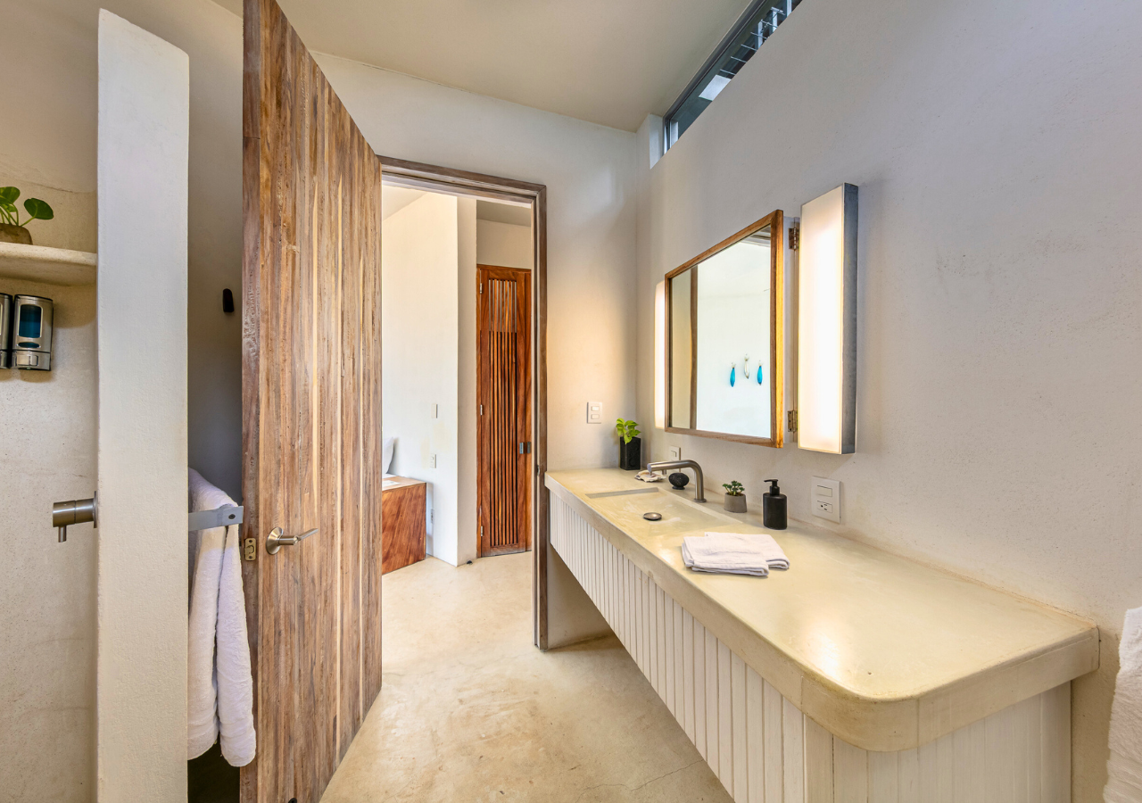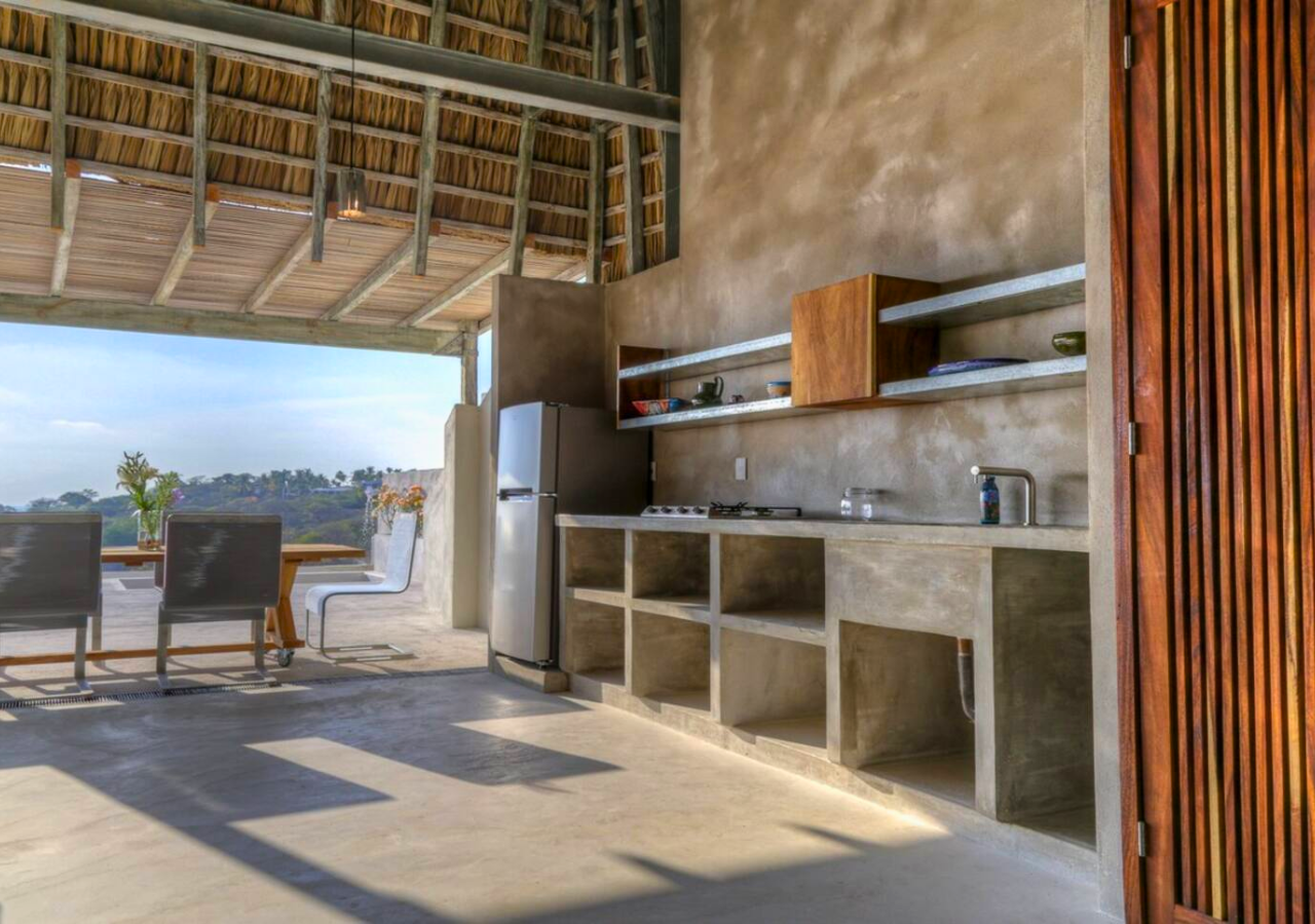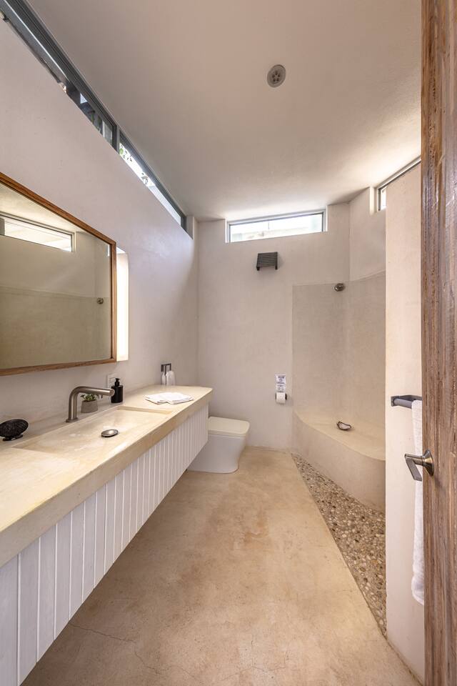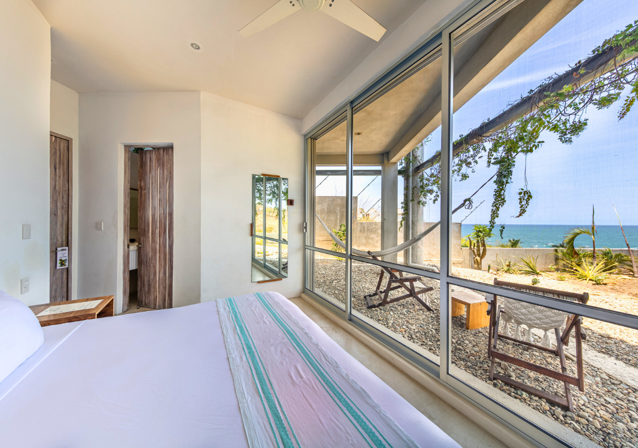 Room #7 is a cozy and comfortable garden-level bedroom designed with natural textures and modern industrial flair. Guests can choose between a king-size bed or two twin beds, making it ideal for solo travelers, friends, or couples. Step outside to your private garden patio, where hammock chairs and a table create a peaceful space for enjoying the morning breeze or a quiet sunset moment. The room includes an ensuite bathroom and a digital safe for your personal belongings. Casa Cascada is naturally ventilated and does not have air conditioning or traditional glass windows. The open-air architecture allows ocean breezes to flow through rooms and shared spaces. Please note: Casa Cascada is built into a hillside and spans multiple levels connected by outdoor stairs and elevated walkways. There are no elevators, and some areas include open ledges, stone paths, and uneven surfaces. These features may be important to consider for guests traveling with young children or individuals with mobility limitations. Shared spaces available to all guests include: • Fully equipped kitchen • Spacious dining and living areas • Infinity pool with panoramic ocean views • Dedicated remote working space Geographic Setting: Casa Cascada is located just above Playa Manzanillo—one of Puerto Escondido’s most scenic and swimmable beaches. The home is a 5-minute drive from Puerto Escondido Airport, 7 minutes to Zicatela Beach, and 12 minutes to La Punta. The neighborhood is calm and safe, perfect for a coastal experience. Free street parking with camera surveillance is available nearby. Nearby Amenities: Guests have easy access to surf beaches, yoga studios, markets, cafés, and local restaurants. Taxis are widely available, and airport transfers can be arranged upon request. Nearby jungle trails and untouched beaches offer a deeper connection to nature. Key Features: Garden-level room with private patio 🌿 Open-air eco design with fans 🌬️ Infinity pool with ocean panorama 🌅 Flexible bed setup: king or twin beds 🛏️ High-speed Wi-Fi & remote work area 💻 Secure digital safe 🔐 Daily homemade breakfast included 🍳 Friendly staff & multilingual host 🤝 Kitchen and common areas shared with other guests 🍽️ Transportation: Free street parking is nearby. Taxis and airport transfers can be arranged. The home is 15 minutes from downtown Puerto Escondido and close to local surf and beach destinations.