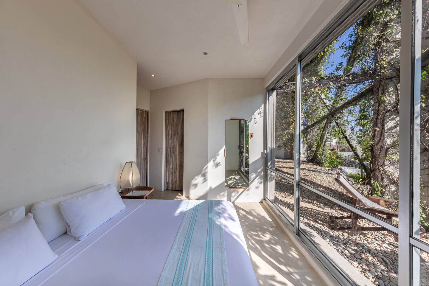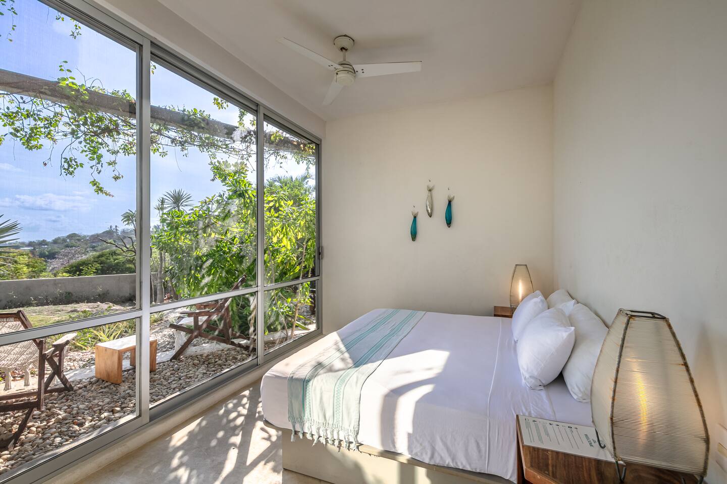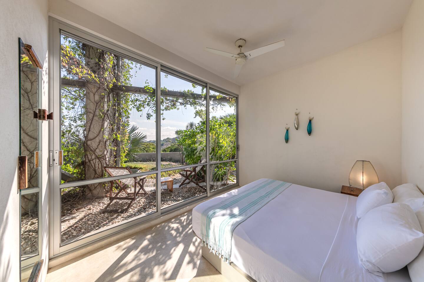 Room #4 is a spacious garden-level bedroom that blends comfort with tropical charm. The room features a flexible bed setupâchoose either a king-size bed or two twin bedsâideal for solo travelers, friends, or couples. Step outside to your private garden patio, complete with hammock chairs and a table, perfect for relaxing amid the natural surroundings. With partial ocean views, an ensuite bathroom, and a peaceful ambiance, this room supports a restful stay. A secure safe is provided in the room for personal belongings. Note: Casa Cascada is naturally ventilated and does not include air conditioning or glass windows. The open design welcomes ocean breezes to cool the space. This room may not suit guests who require traditional climate control or complete enclosure. Please also note: Our multi-level property is built into a hillside and features outdoor staircases, uneven stone paths, and open walkways. These architectural elements may not suit those requiring mobility support or childproofed surroundings. SHARED SPACES AVAILABLE TO ALL GUESTS INCLUDE: ⢠A fully equipped kitchen ⢠Spacious dining and living area ⢠Infinity pool with panoramic views ⢠Dedicated remote working space GEOGRAPHIC SETTING: Casa Cascada is located just above Playa Manzanilloâone of Puerto Escondidoâs most swimmable and scenic beaches. The property is a 5-minute drive from Puerto Escondido Airport, 7 minutes from Zicatela Beach, and 12 minutes from La Punta. The neighborhood is peaceful and safe, ideal for a relaxing coastal experience. Ample street parking with camera surveillance is available nearby. NEARBY AMENITIES: Guests have easy access to surf beaches, yoga studios, artisanal markets, restaurants, and cafĂŠs. Taxis are readily available, and transportation to/from Puerto Escondido Airport can be arranged upon request. For nature lovers, nearby jungle trails and secluded beaches offer a deeper connection with the landscape. KEY FEATURES: ⢠Tranquil natural setting đ ⢠Open-air eco design with fans đŹď¸ ⢠Infinity pool with panoramic views đ ⢠Garden-level patio with hammock seating đż ⢠Daily homemade breakfast included đł ⢠King or twin bed setup + ensuite bathroom đď¸ â˘ High-speed Wi-Fi & co-working space đť ⢠Secure digital safe đ ⢠Friendly staff & English-speaking host đ¤ TRANSPORTATION: Taxis and airport transfers are available upon request. Free street parking is nearby. The property is just 15 minutes from downtown Puerto Escondido and close to several beach towns and surf spots.