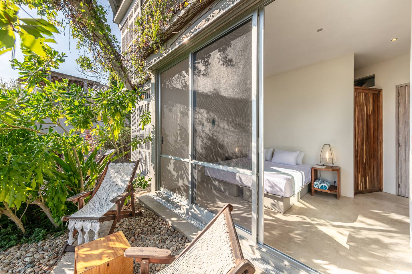 Escape to Casa Cascada, a thoughtfully designed boutique stay nestled above Playa Manzanillo in Puerto Escondido. This tranquil, garden-level room blends modern industrial style with tropical ease. Relax on your private patio with hammock chairs and lush greenery around you. Whether you're here to unwind or work remotely, Room 4 offers a cozy, flexible setup and daily homemade breakfast to start your day. đł